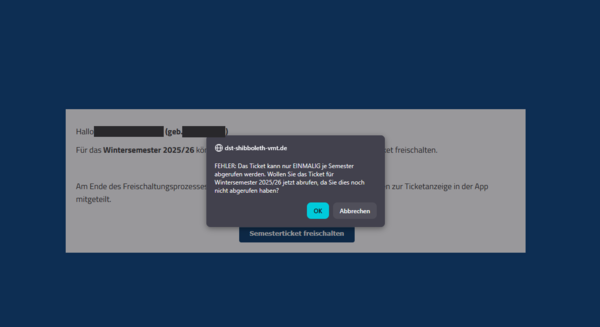 If multiple semesters are available for selection, please select the ticket for the current semester first and import it into the app. Only after that should you import the ticket for the next semester. Otherwise, the ticket for the current semester can no longer be retrieved.