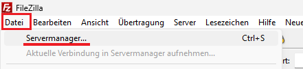 Öffnen Sie nach dem Start von FileZilla links oben im Menüpunk Datei
