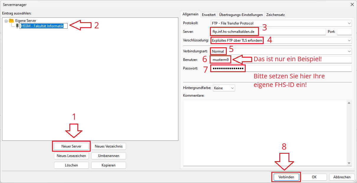 erfordert die Eingabe Ihres Passwortes bei jedem Verbindungsversuch. - Tragen Sie Ihre eigene FHS-ID bei