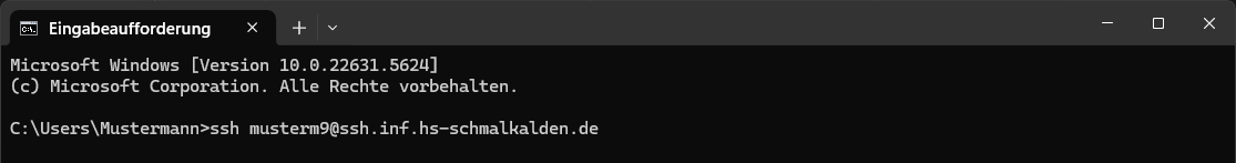 Geben Sie den Befehl ssh IHRE_FHS_ID@ssh.inf.hs-schmalkalden.de