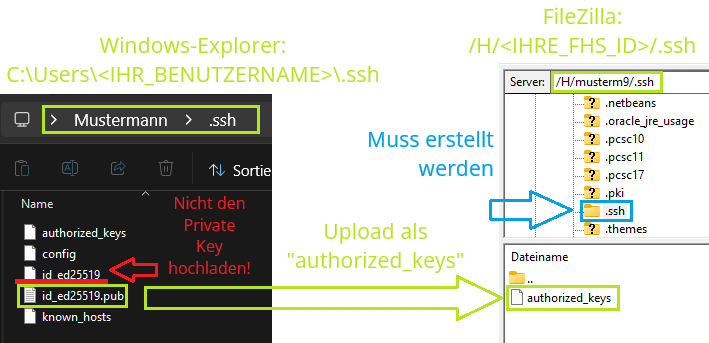 vorab in Ihrem Home-Verzeichnis in der Datei .ssh/authorized_keys