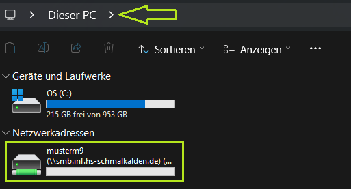 Als Beispiel wird nun das Home-Verzeichnis als Netzlaufwerk eingebunden („gemappt“). Dies ist aber prinzipiell für jede beliebige Freigabe möglich.