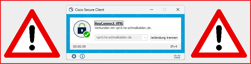 Stimmt keine dieser Zeichenketten überein, dann handelt sich um einen gefälschten Server, mit dem Sie sich nicht verbinden sollten! Melden Sie solche Vorfälle bitte an informatik@hs-schmalkalden.de.