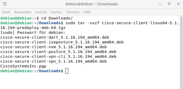 sudo tar -vxzf cisco-secure-client-linux64-5.1.16.194-predeploy-deb-k9.tgz