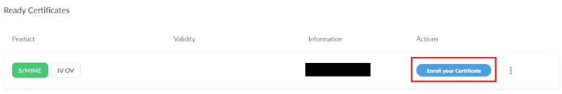 - In Ihrem Dashboard wird unter „Ready Certificates“ nun das E-Mail-Zertifikat (S/MIME) angezeigt