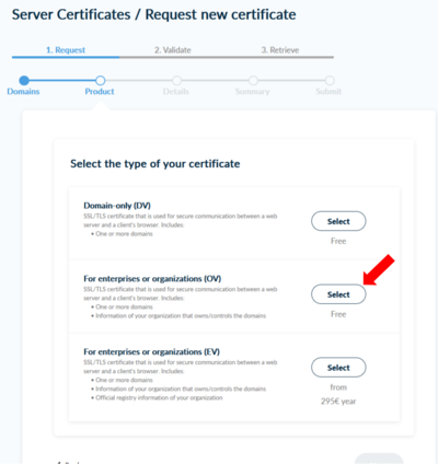 - Sie können diese zusammen mit einem private Key von Harica generieren lassen 1